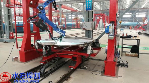 加強筋焊接機器人用于罐體封頭、隔板等加強筋的自動激光掃描、搬運、切割、焊接自動工序,采用PLC可編程控制器自動控制技術、圖形軌跡采集系統、工業計算機控制等技術,配備了圖形軌跡運動控制系統,使加強筋與封頭的連接處緊密結合,外形美觀,質量可靠、生產效率高、操作簡單方便等優點,不僅可提高工作效率,改善操作環境,而且能提高罐體封頭的自動化程度,可保證批量生產過程中可靠穩定的廂板成形質量,大大提升改裝汽車產業和壓力容器的產品檔次。而且它制作的加強筋成形外觀更加圓滑美觀,成形應力更小、使用壽命更長。它比手工測量、計算、劃線、裁剪、對中、矯正、焊接,工作效率更高、并可節省大量人力資源。